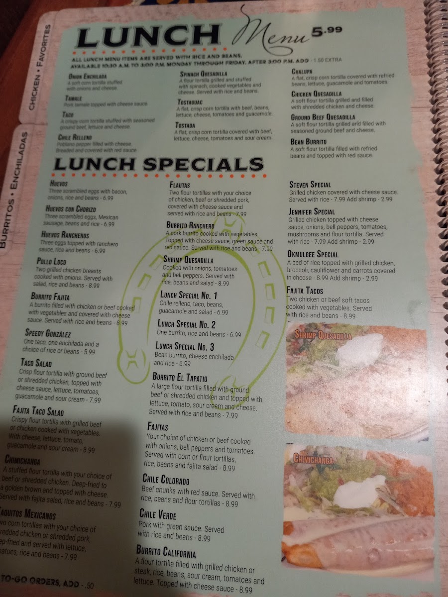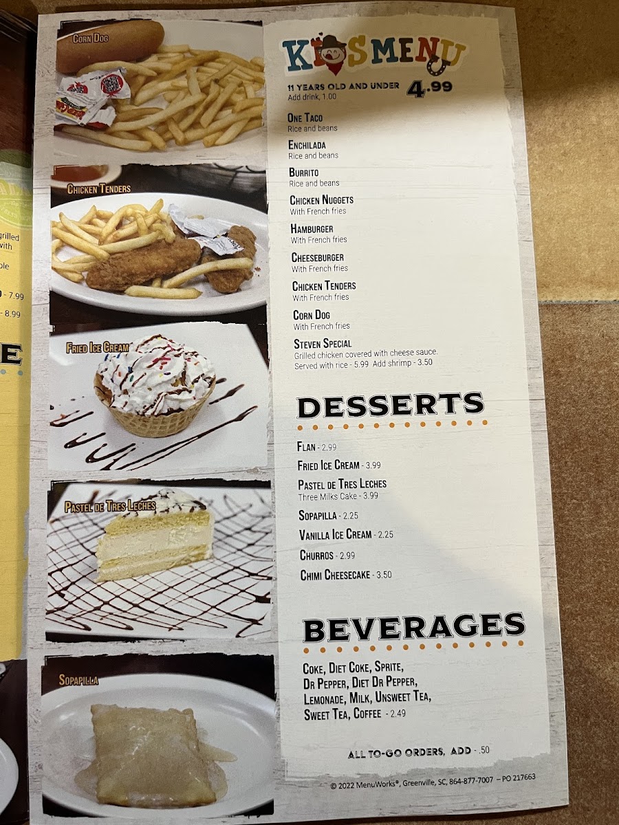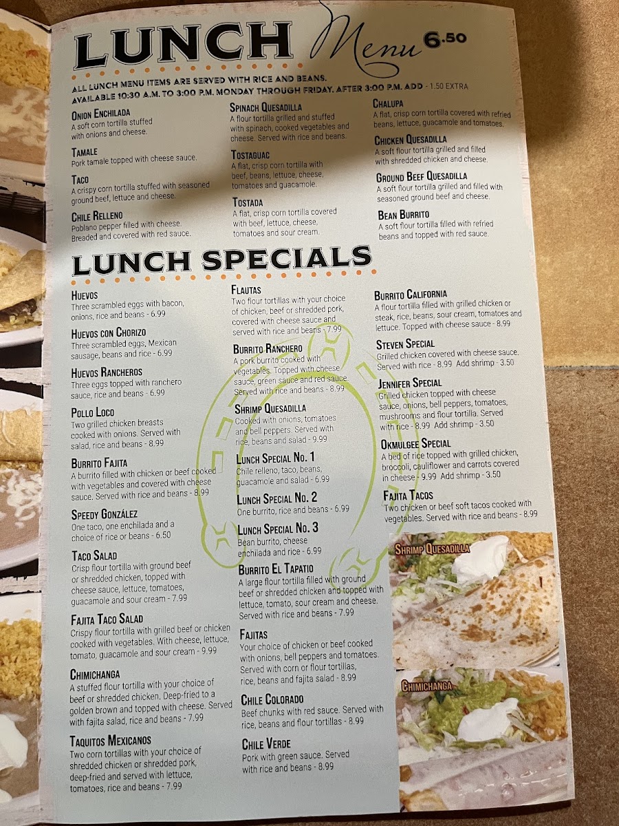 The menu is ideal for casual meals where you can enjoy familiar flavors shared with family or friends. Whether you're stopping by for a relaxed lunch or a cozy dinner, dishes like shrimp quesadilla or tacos de carne asada invite a laid-back yet genuine dining experience. Light appetizers like chips with salsa or guacamole fit perfectly with the warm, inviting atmosphere, encouraging conversation and a comfortable pace.