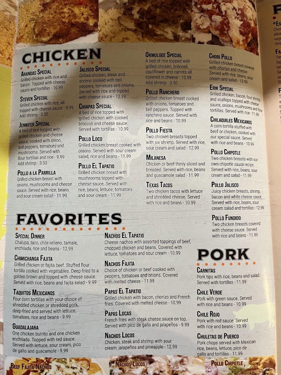 Overall, the food at Tapatio supports a welcoming environment where generous portions and familiar tastes come together naturally, making it a dependable choice for those seeking simple, well-made Mexican fare in a friendly atmosphere.