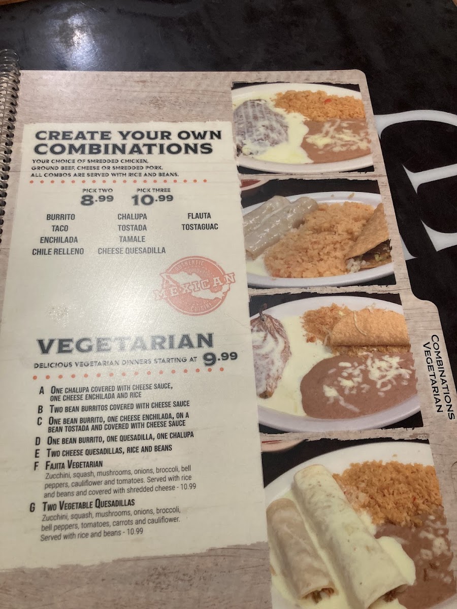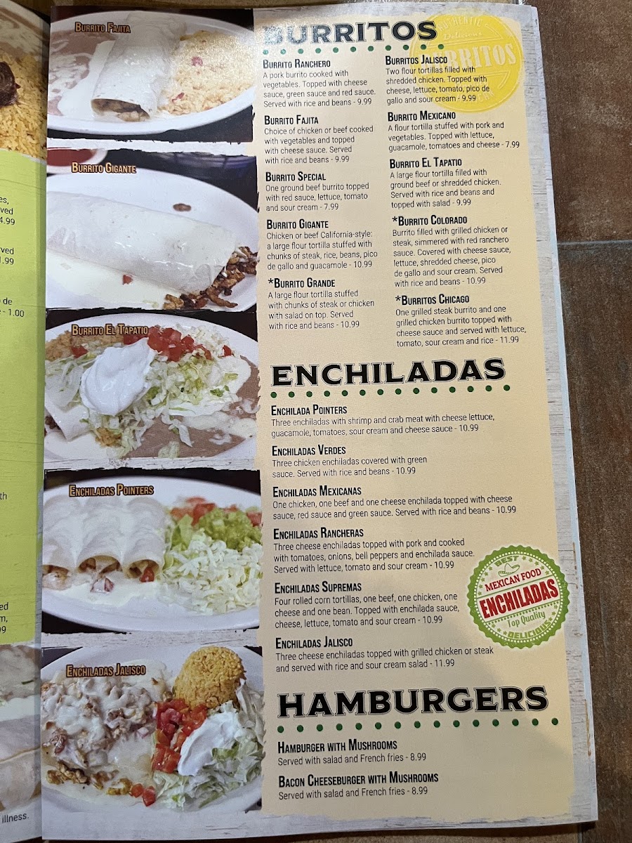 For those looking to mix and match, the menu offers flexible combinations like burrito and enchiladas or burrito and salad, which add convenience without sacrificing variety. The drink options, including refreshing cheladas and mixed drinks, complement the hearty flavors and help round out the meal in an unpretentious setting.